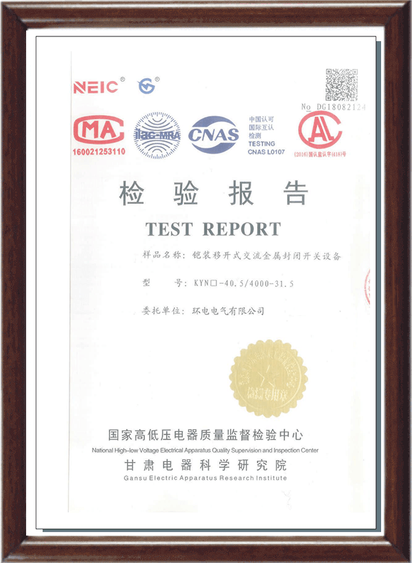 KYN28A-12鎧裝移開式交流金屬封閉開關設備檢驗報告
